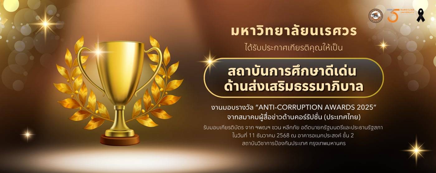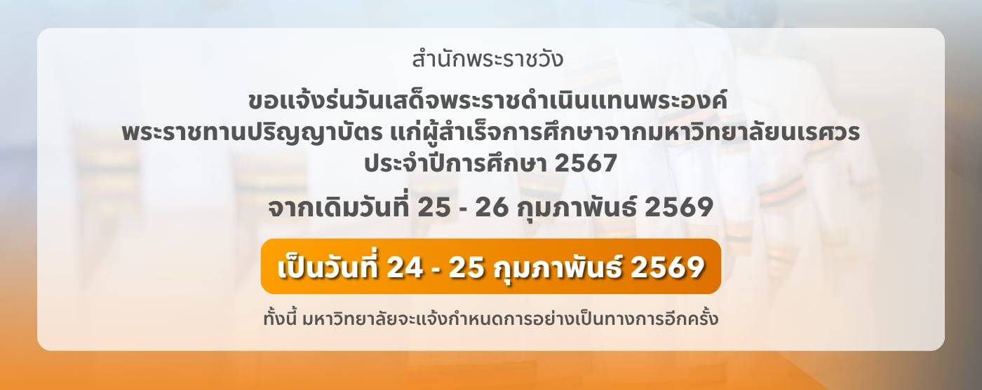 เว็บไซต์ มหาวิทยาลัยนเรศวร ใช้คุกกี้เพื่อเพิ่มประสิทธิภาพและประสบการณ์ที่ดีในการใช้เว็บไซต์ท่านสามารถศึกษารายละเอียดการใช้คุกกี้ได้ที่"นโยบายการใช้คุกกี้" และ นโยบายการคุ้มครองข้อมูลส่วนบุคคล