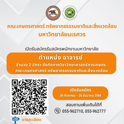 ✅สอบถามเพิ่มเติม : หน่วยบุคคล คณะเกษตรศาสตร์ฯ ☎️055-962710