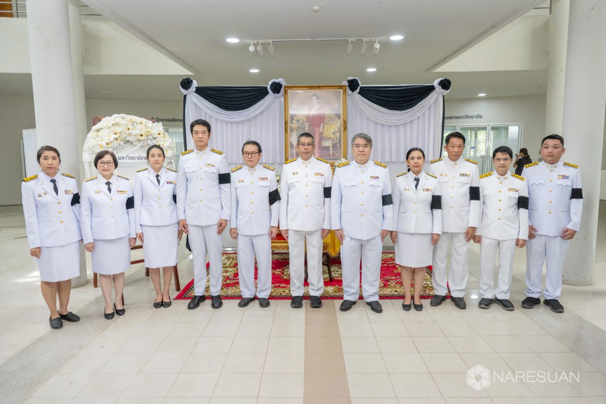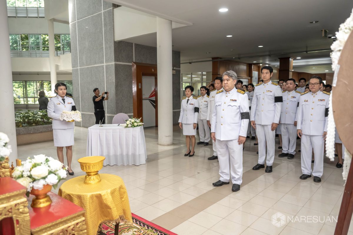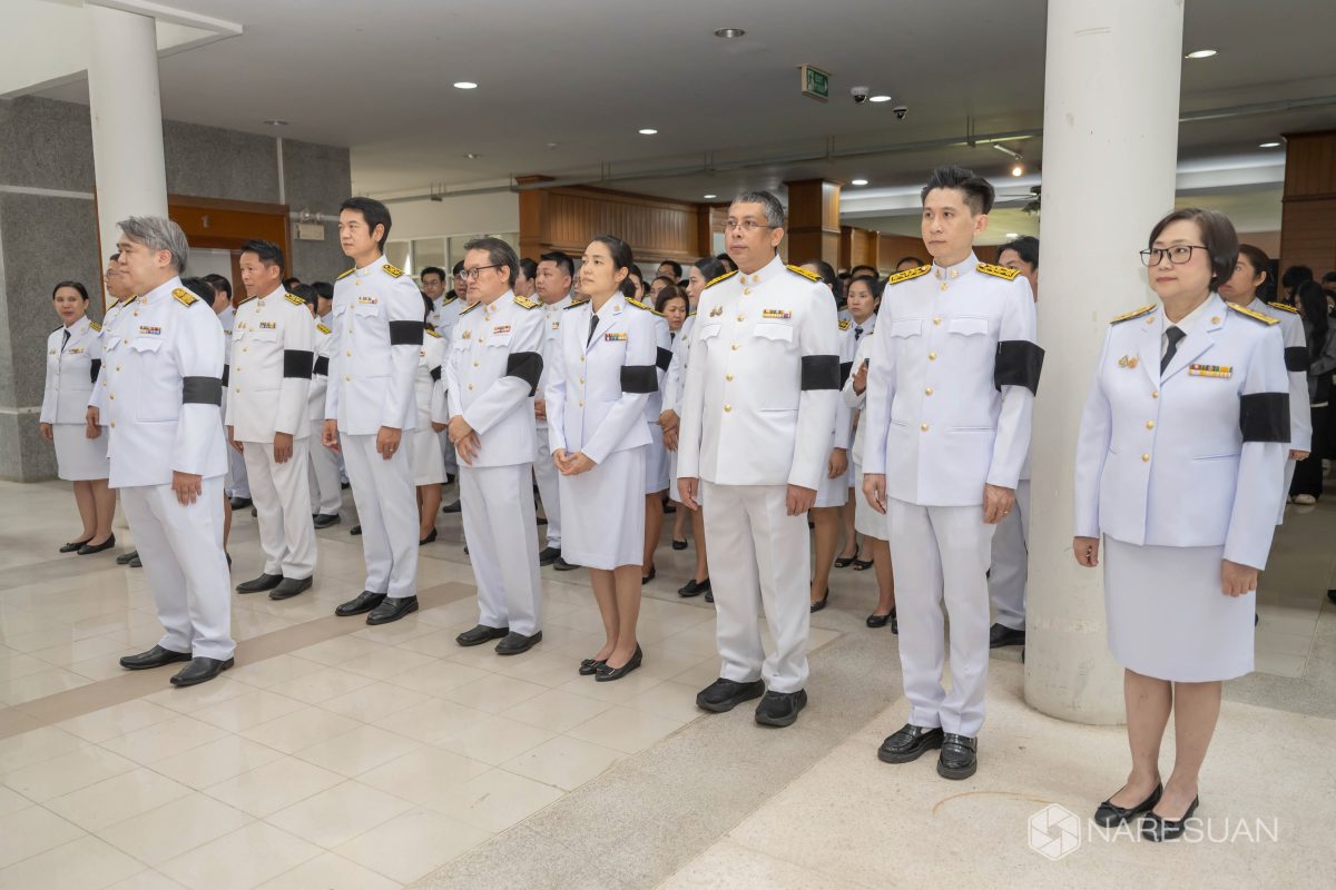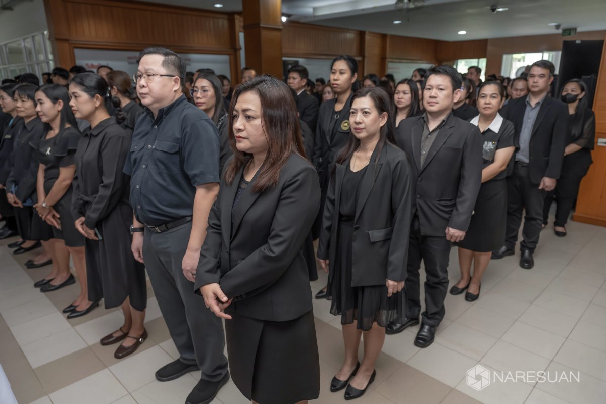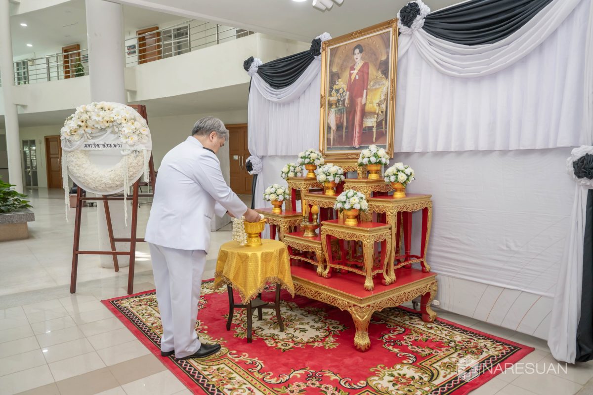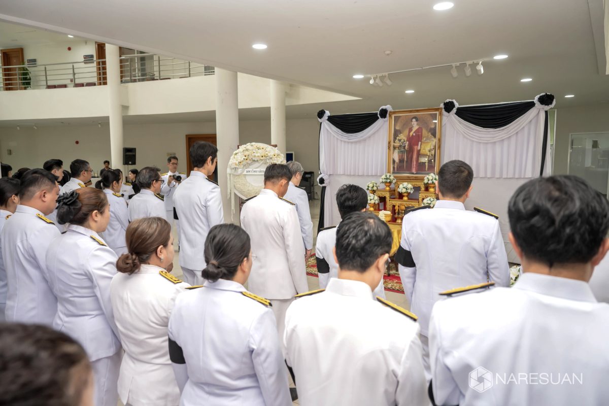 เมื่อวันที่ 27 ตุลาคม 2568 เวลา 13.00 ผู้ช่วยศาสตราจารย์ ดร.ภาณุ พุทธวงศ์ รองอธิการบดีฝ่ายบริหาร มหาวิทยาลัยนเรศวร เป็นประธานในพิธีถวายความอาลัยและน้อมรำลึกในพระมหากรุณาธิคุณของสมเด็จพระนางเจ้าสิริกิติ์ พระบรมราชินีนาถ พระบรมราชชนนีพันปีหลวง โดยมีผู้บริหาร คณาจารย์ บุคลากร และนิสิตเข้าร่วมพิธี ซึ่งกิจกรรมในครั้งนี้ประกอบด้วย การลงนามถวายความอาลัย ถวายพวงมาลัย วางพวงมาลา เบื้องหน้าพระบรมฉายาลักษณ์ และผู้เข้าร่วมพิธีทุกท่านร่วมยืนสงบนิ่งเพื่อเป็นการไว้อาลัย ทั้งนี้ มหาวิทยาลัยนเรศวรได้จัดเตรียมจุดลงนามถวายความอาลัยเพื่อให้บุคลากรและนิสิตสามารถมาร่วมลงนามถวายความอาลัยได้ ณ บริเวณโถง ชั้น 1 อาคารสำนักงานอธิการบดี มหาวิทยาลัยนเรศวร