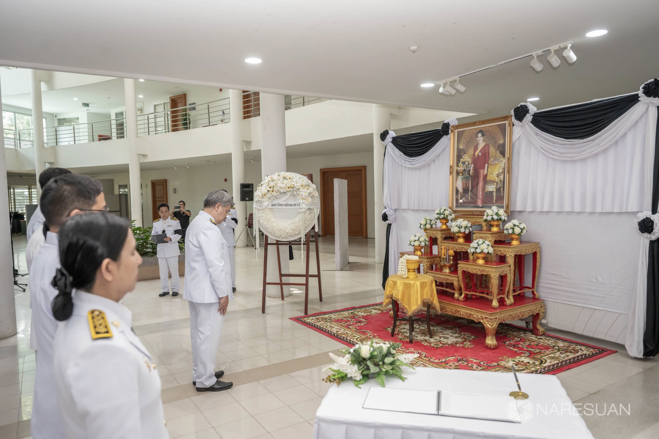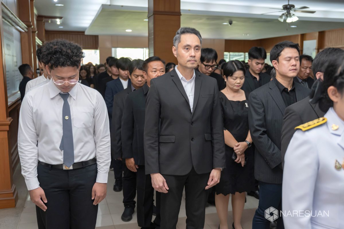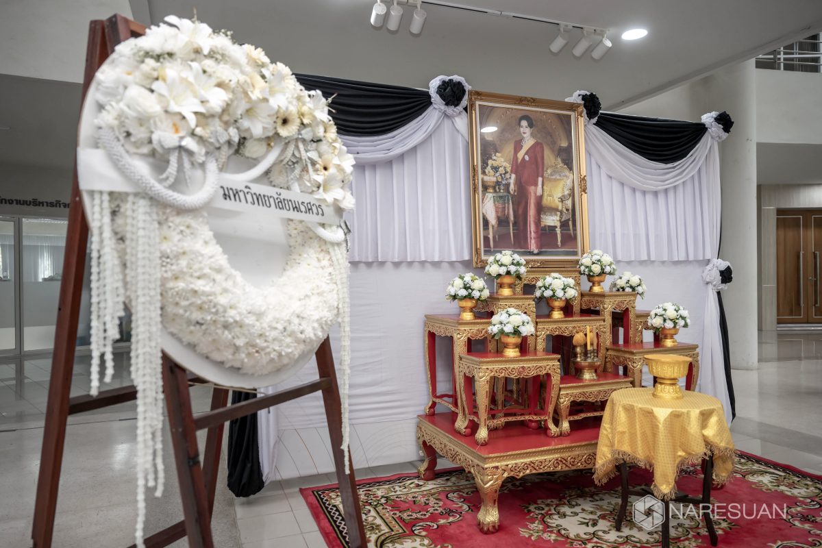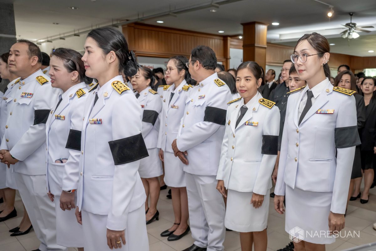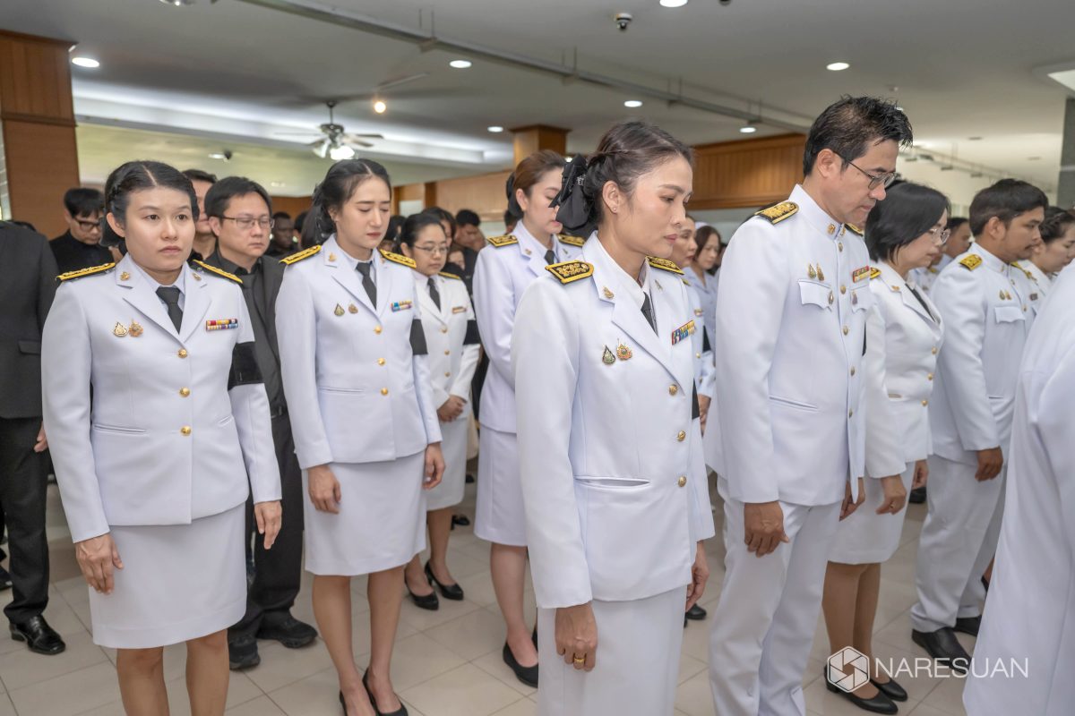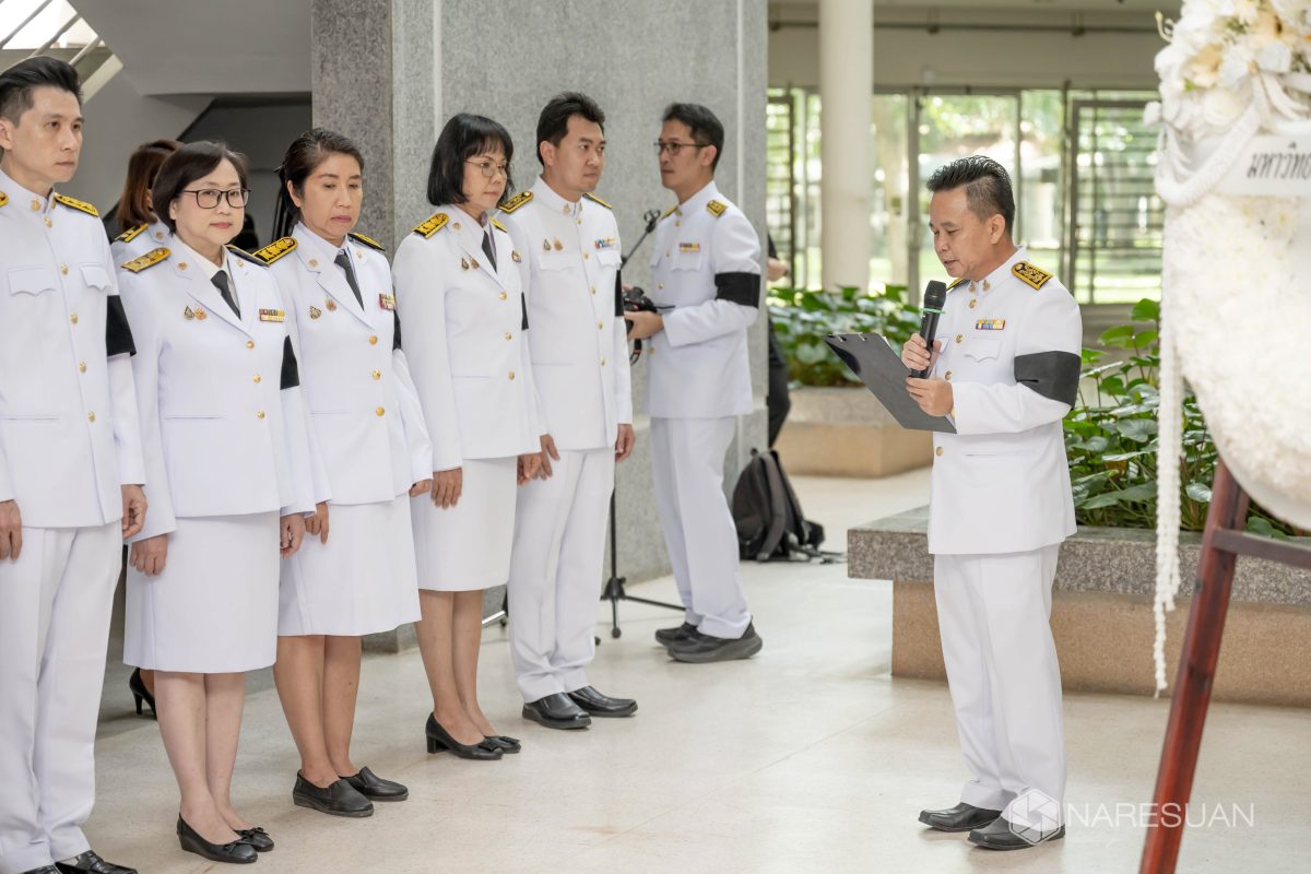 เมื่อวันที่ 27 ตุลาคม 2568 เวลา 13.00 ผู้ช่วยศาสตราจารย์ ดร.ภาณุ พุทธวงศ์ รองอธิการบดีฝ่ายบริหาร มหาวิทยาลัยนเรศวร เป็นประธานในพิธีถวายความอาลัยและน้อมรำลึกในพระมหากรุณาธิคุณของสมเด็จพระนางเจ้าสิริกิติ์ พระบรมราชินีนาถ พระบรมราชชนนีพันปีหลวง โดยมีผู้บริหาร คณาจารย์ บุคลากร และนิสิตเข้าร่วมพิธี ซึ่งกิจกรรมในครั้งนี้ประกอบด้วย การลงนามถวายความอาลัย ถวายพวงมาลัย วางพวงมาลา เบื้องหน้าพระบรมฉายาลักษณ์ และผู้เข้าร่วมพิธีทุกท่านร่วมยืนสงบนิ่งเพื่อเป็นการไว้อาลัย ทั้งนี้ มหาวิทยาลัยนเรศวรได้จัดเตรียมจุดลงนามถวายความอาลัยเพื่อให้บุคลากรและนิสิตสามารถมาร่วมลงนามถวายความอาลัยได้ ณ บริเวณโถง ชั้น 1 อาคารสำนักงานอธิการบดี มหาวิทยาลัยนเรศวร