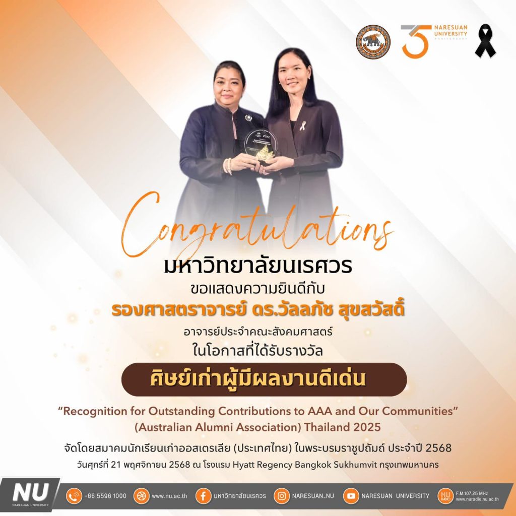 ในโอกาสที่ได้รับรางวัล ศิษย์เก่าผู้มีผลงานดีเด่น “Recognition for Outstanding Contributions to AAA and Our Communities” (Australian Alumni Association) Thailand 2025