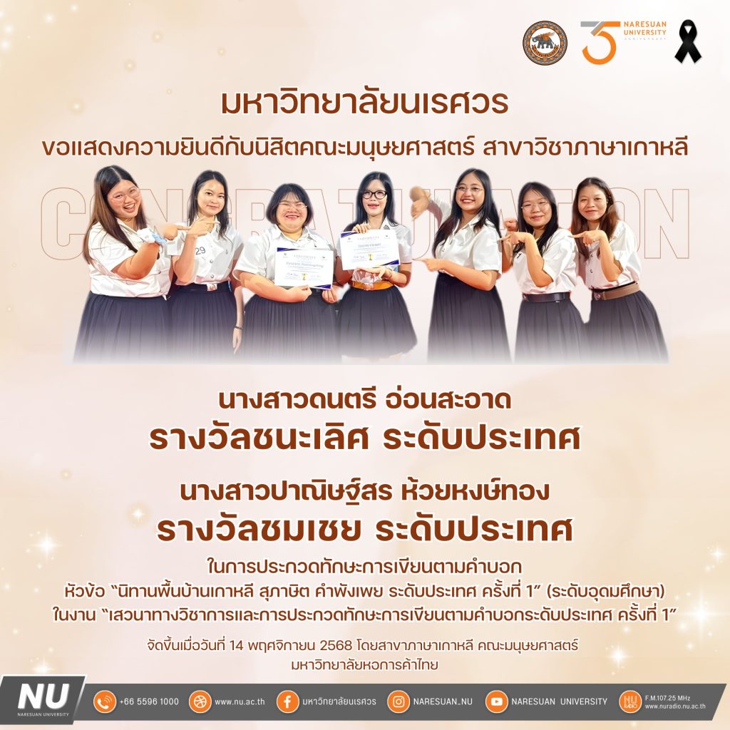 ขอแสดงความยินดีกับ นิสิตคณะมนุษยศาสตร์ สาขาวิชาภาษาเกาหลี