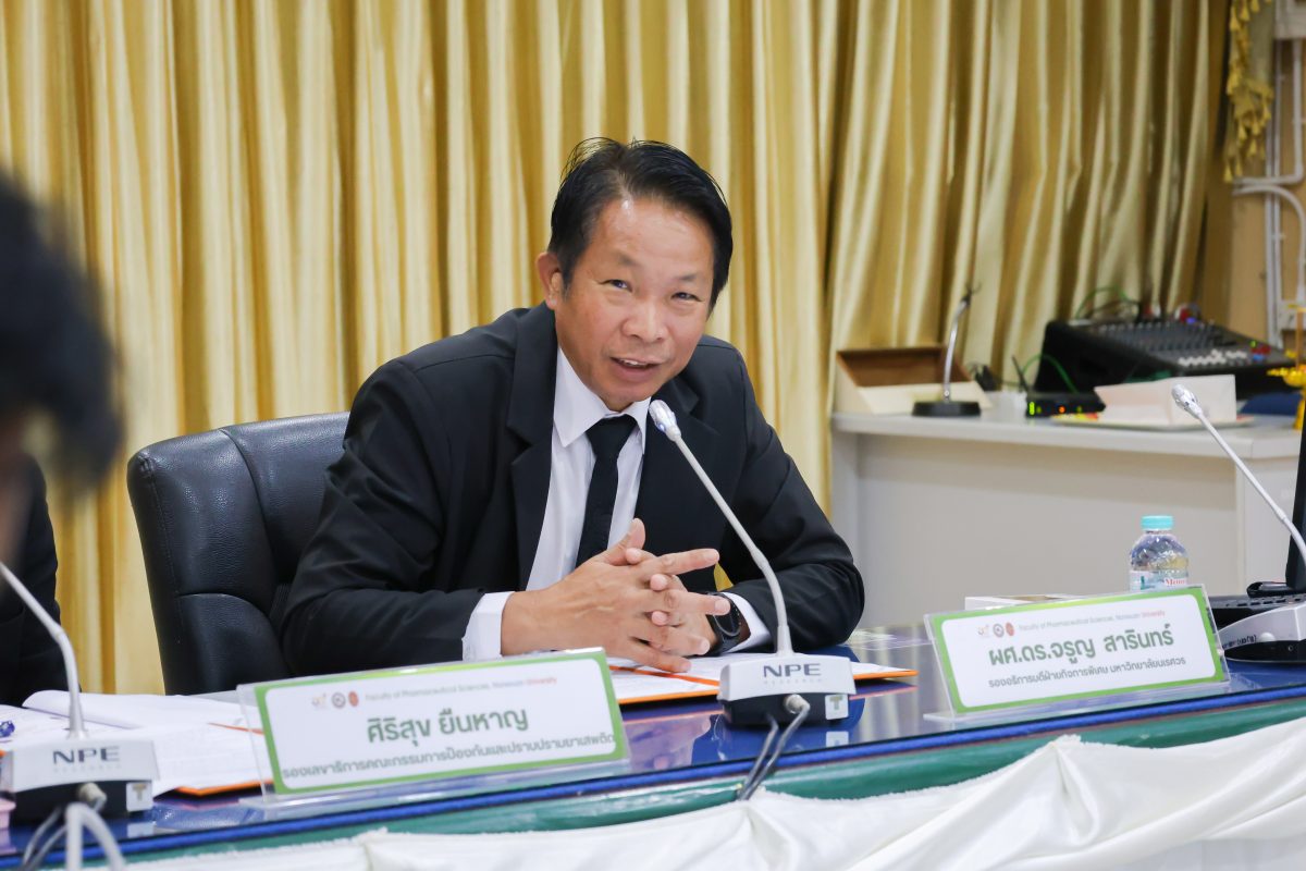 ผศ.ดร.จรูญ สารินทร์ รองอธิการบดีฝ่ายกิจการพิเศษ มหาวิทยาลัยนเรศวร เป็นผู้แทนมหาวิทยาลัยนเรศวร ต้อนรับนายศิริสุข ยืนหาญ รองเลขาธิการสำนักงานคณะกรรมการป้องกันและปราบปรามยาเสพติด (ป.ป.ส.) พร้อมคณะ ในโอกาสตรวจเยี่ยมการดาเนินการตามพระราชกฤษฎีกากำหนดพื้นที่ทดลองเพาะปลูกและสกัดสารสาคัญจากพืชฝิ่นและพืชเห็ดขี้ควาย เพื่อประโยชน์ในการศึกษาวิจัย พ.ศ. 2568 โดยมี รศ. ดร.ภญ.รัตติมา จีนาพงษา คณบดีคณะเภสัชศาสตร์ พร้อมผู้บริหารและนักวิจัย ร่วมให้การต้อนรับและบรรยายสรุปเกี่ยวกับแนวทางการศึกษาวิจัย ทดลองเพาะปลูก และสกัดสารสาคัญจากพืชเห็ดขี้ควายเพื่อประโยชน์ในการศึกษาวิจัย ในพื้นที่มหาวิทยาลัยนเรศวร เมื่อวันที่ 11 ธันวาคม 2568 ณ ห้องไชยานุภาพ 6 คณะเภสัชศาสตร์ มหาวิทยาลัยนเรศวร