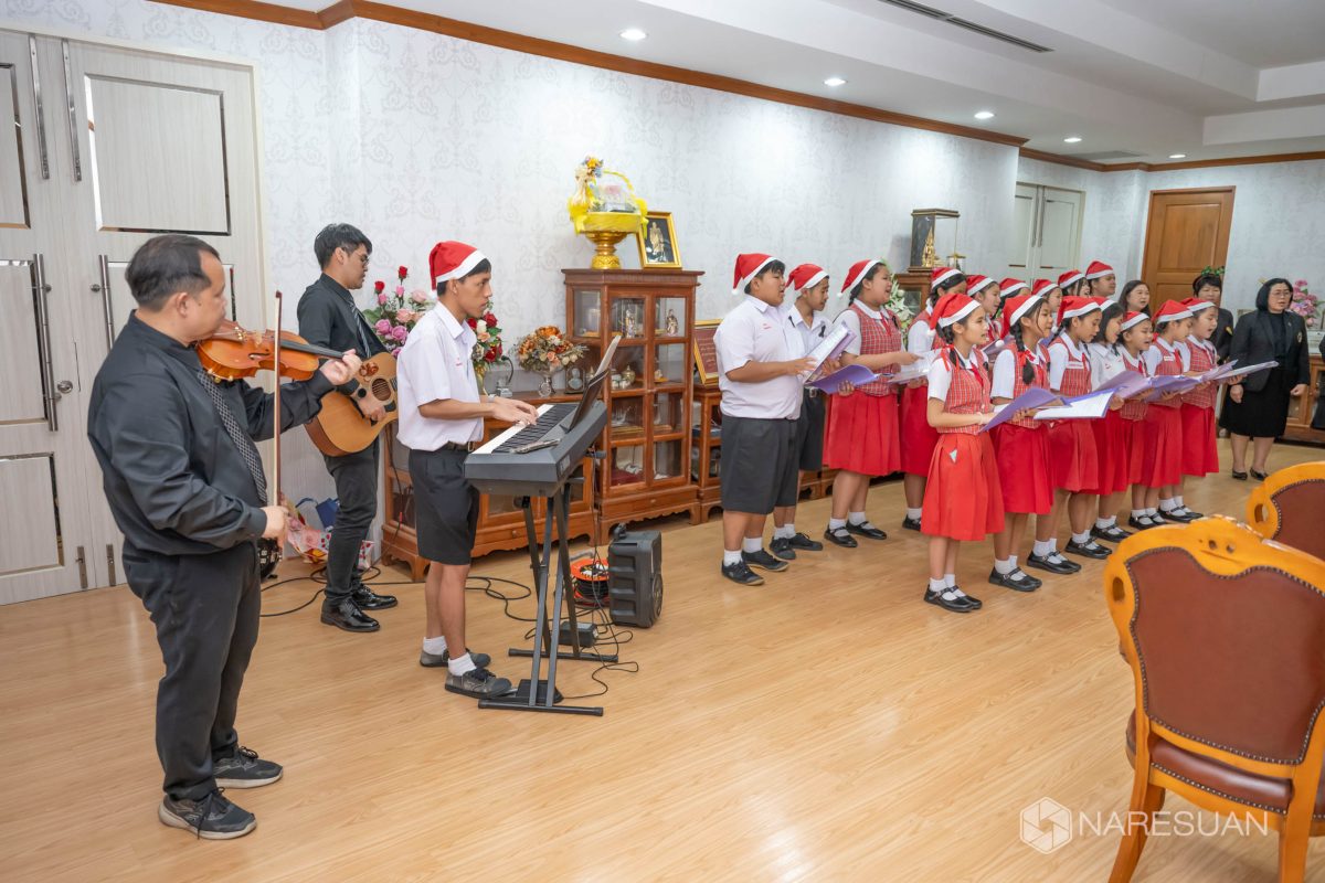 เมื่อวันที่ 17 ธันวาคม 2568 ผศ. ดร.ภาณุ พุทธวงศ์ รองอธิการบดีฝ่ายบริหารมหาวิทยาลัยนเรศวร เป็นผู้แทนมหาวิทยาลัยนเรศวร กล่าวอวยพรแก่คณะครูและนักเรียนจากโรงเรียนผดุงราษฎร์ ที่มาร้องเพลงอวยพรเนื่องในวันคริสต์มาส 2026 และวันปีใหม่ 2569 โดยมีคณะผู้บริหารมหาวิทยาลัยร่วมรับฟังด้วยความชื่นชมในความสามารถของเด็ก ๆ พร้อมมอบของที่ระลึกและถ่ายภาพร่วมกัน ณ ห้องสุพรรณกัลยา อาคารสำนักงานอธิการบดี ชั้น 2 มหาวิทยาลัยนเรศวร