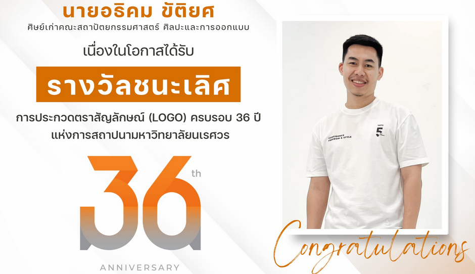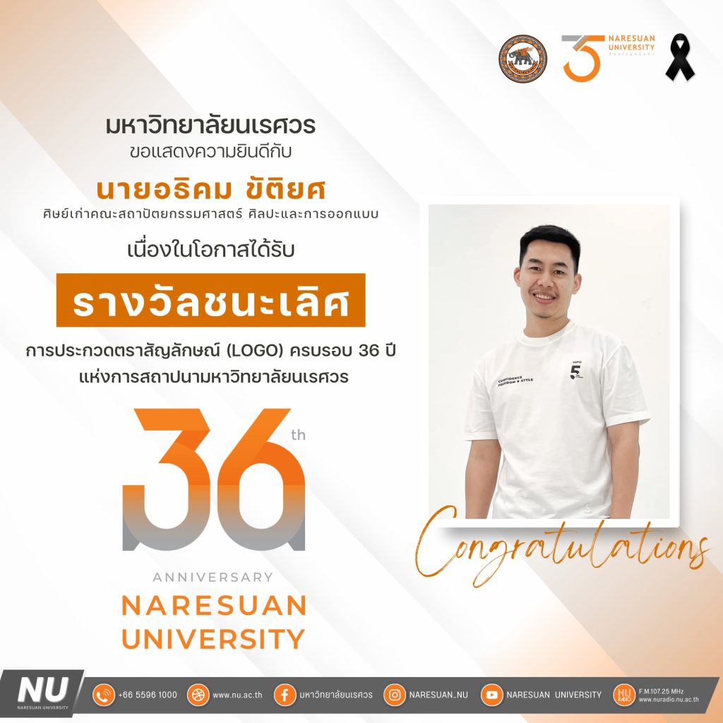 เนื่องในโอกาสได้รับ 🥇รางวัลชนะเลิศ🥇การประกวดตราสัญลักษณ์ (LOGO) ครบรอบ 36 ปี แห่งการสถาปนามหาวิทยาลัยนเรศวร