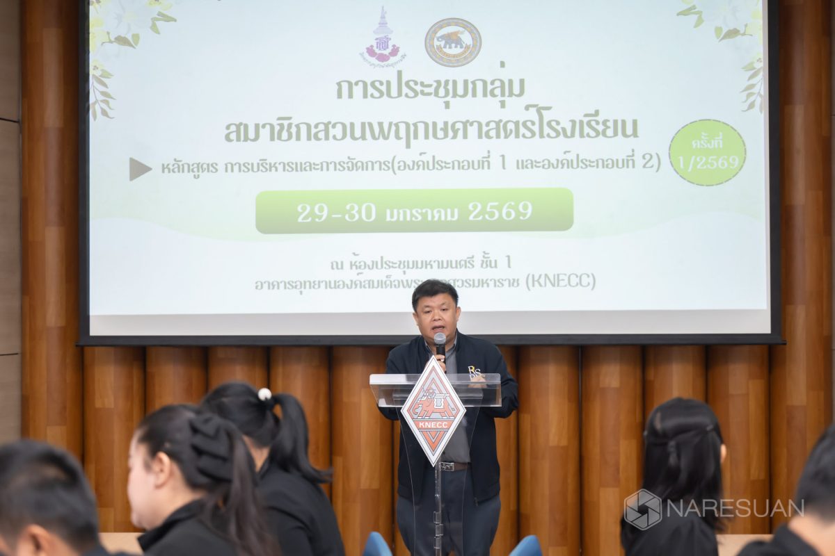 เมื่อวันที่ 29 มกราคม 2569 ผศ. ศิษฐ์ภัณฑ์ แคนลา รักษาการในตำแหน่งผู้อำนวยการกองส่งเสริมการบริการวิชาการ เป็นประธานกล่าวเปิดการประชุมกลุ่มสมาชิกสวนพฤกษศาสตร์โรงเรียน หลักสูตร การบริหารและการจัดการ องค์ประกอบที่ 1 – 2 ซึ่งมหาวิทยาลัยนเรศวร ในนามหน่วยงานสนองพระราชดำริ และเป็นศูนย์ประสานงาน อพ.สธ.-มหาวิทยาลัยนเรศวร มีความมุ่งมั่นตั้งใจที่จะขับเคลื่อนการสนองพระราชดำริให้สอดคล้องกับการดำเนินงานตามแผนแม่บท ระยะ 5 ปีที่เจ็ด ภายใต้โครงการอนุรักษ์พันธุกรรมพืชอันเนื่องมาจากพระราชดำริ สมเด็จพระเทพรัตนราชสุดาฯ สยามบรมราชกุมารี (อพ.สธ.) เพื่อสร้างความรู้ ความเข้าใจแนวทางการดำเนินงานสวนพฤกษศาสตร์โรงเรียนที่จะให้สมาชิกสวนพฤกษศาสตร์โรงเรียนมีความรู้ความเข้าใจแนวทางการดำเนินงาน วิธีการ หลักการ รวมถึงขั้นตอนการดำเนินงาน ตามองค์ประกอบที่ 1 – 2 ที่จะนำไปปรับประยุกต์ใช้กับการเรียนการสอนในสถานศึกษาตามเจตนารมณ์ของโครงการฯ ด้วยการเรียนรู้แบบลงมือปฏิบัติจริงจากการให้คำปรึกษา ชี้แนะแนวทางจากวิทยากรศูนย์ประสานงาน อพ.สธ.-มหาวิทยาลัยนเรศวร มุ่งเน้นการลงมือปฏิบัติจริง โดยมุ่งหวังว่า ผู้เข้าร่วมการประชุมจะสามารถนำความรู้ไปประยุกต์ใช้ในการปฏิบัติงานสนองพระราชดำริ ในงานสวนพฤกษศาสตร์โรงเรียนจนถึงการดำเนินการที่ต่อเนื่อง และวางแผนขอรับการประเมินเข้าสู่มาตรฐานจาก อพ.สธ.ต่อไปในอนาคต โดยมีสมาชิกสวนพฤกษศาสตร์โรงเรียน เข้าร่วมจำนวน 17 หน่วยงาน รวมทั้งสิ้น 42 คน ซึ่งมาจากสมาชิกในเขตพื้นที่รับผิดชอบ 5 จังหวัดของศูนย์ประสานงาน อพ.สธ.-มหาวิทยาลัยนเรศวร ประกอบด้วย จังหวัดพิษณุโลก พิจิตร เพชรบูรณ์ นครสวรรค์ ณ ห้องประชุมมหามนตรี ศูนย์แสดงนิทรรศการและการจัดประชุมนานาชาติสมเด็จพระนเรศวรมหาราช (KNECC) มหาวิทยาลัยนเรศวร