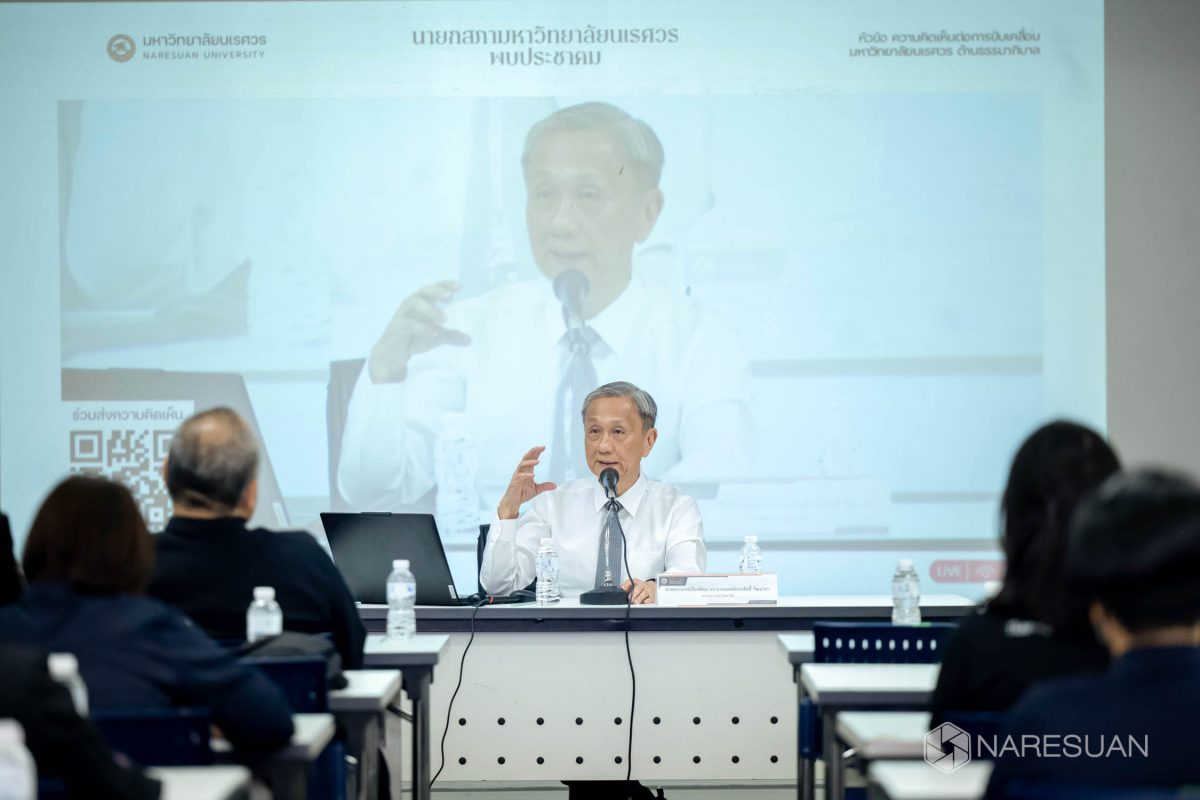 เมื่อวันที่ 29 มกราคม 2569 มหาวิทยาลัยนเรศวร จัดกิจกรรมนายกสภามหาวิทยาลัยนเรศวรพบประชาคม หัวข้อ “ความคิดเห็นต่อการขับเคลื่อนมหาวิทยาลัยนเรศวร ด้านธรรมาภิบาล” โดย ศาสตราจารย์เกียรติคุณ ดร.นายแพทย์ประสิทธิ์ วัฒนาภา นายกสภามหาวิทยาลัยนเรศวร โดยมีผู้บริหาร คณาจารย์ และบุคลากร ร่วมรับฟังและแลกเปลี่ยนข้อคิดเห็น ณ ห้องสัมมนาเอกาทศรถ 210 อาคารเอกาทศรถ ชั้น 2 มหาวิทยาลัยนเรศวร และรับฟังในรูปแบบออนไลน์ เป็นจำนวนมาก
