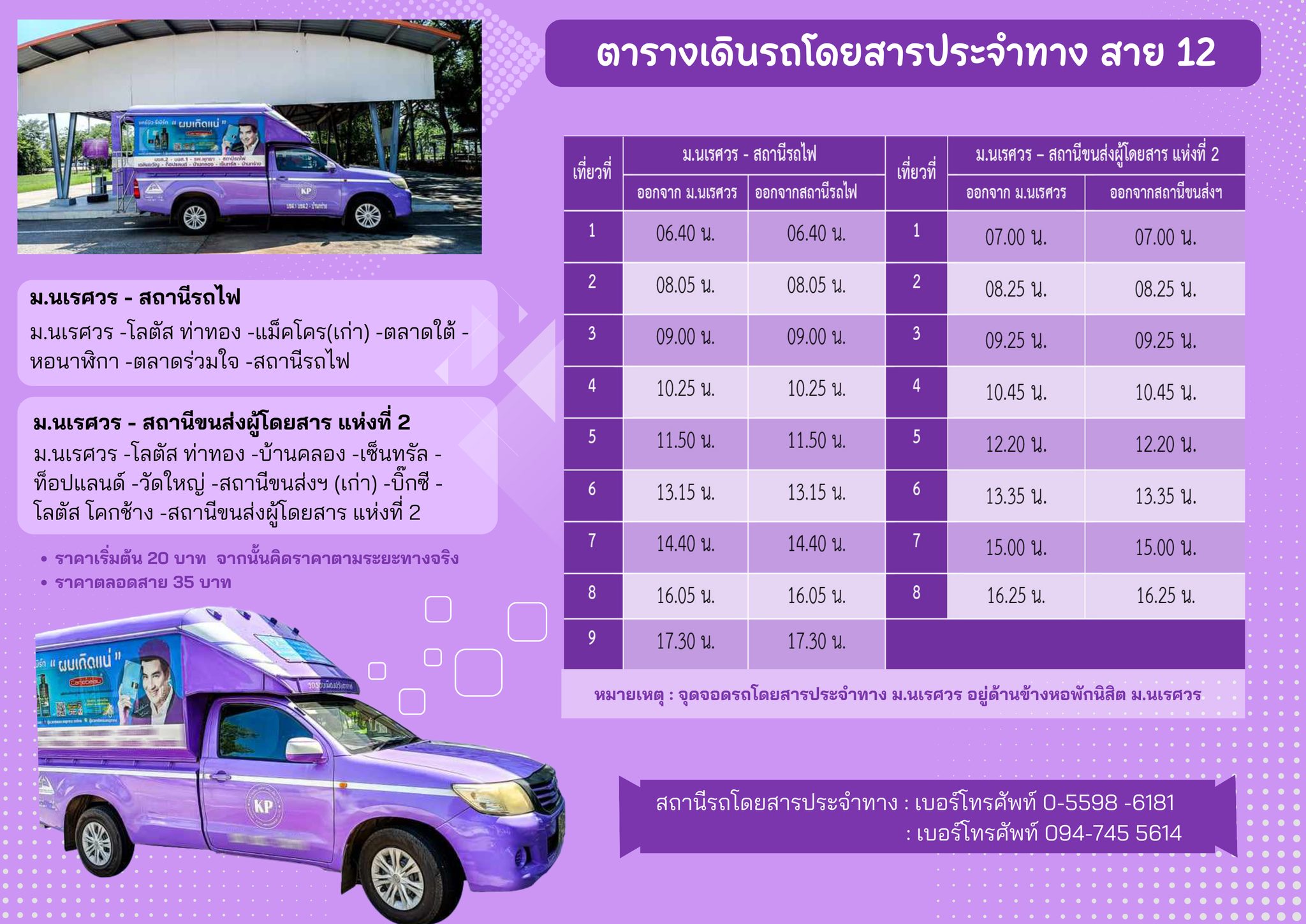 ***สำหรับการเดินทางภายในมหาวิทยาลัยจะมี “โครงการขนส่งมวลชนมหาวิทยาลัยนเรศวร (ขสมน.)”